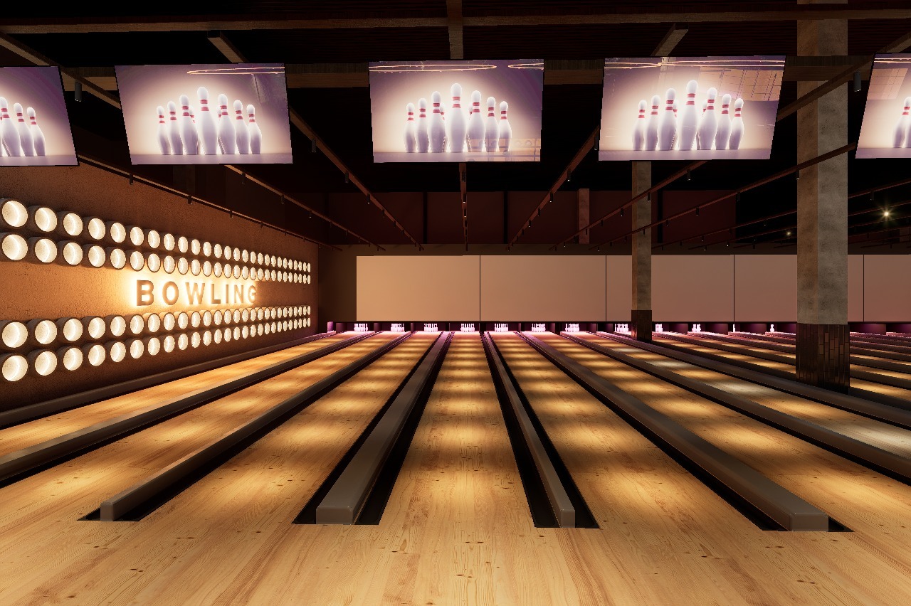 Боулінг займає 2077 м² та оснащений 18 сучасними доріжками, зокрема спеціальними дитячими. Окрім ігрової зони, у просторі передбачена лаунж-зона з місцями для відпочинку та гостьова зона з баром і кухнею. Також передбачені VIP-кімнати з дитячою кімнатою для святкування заходів.