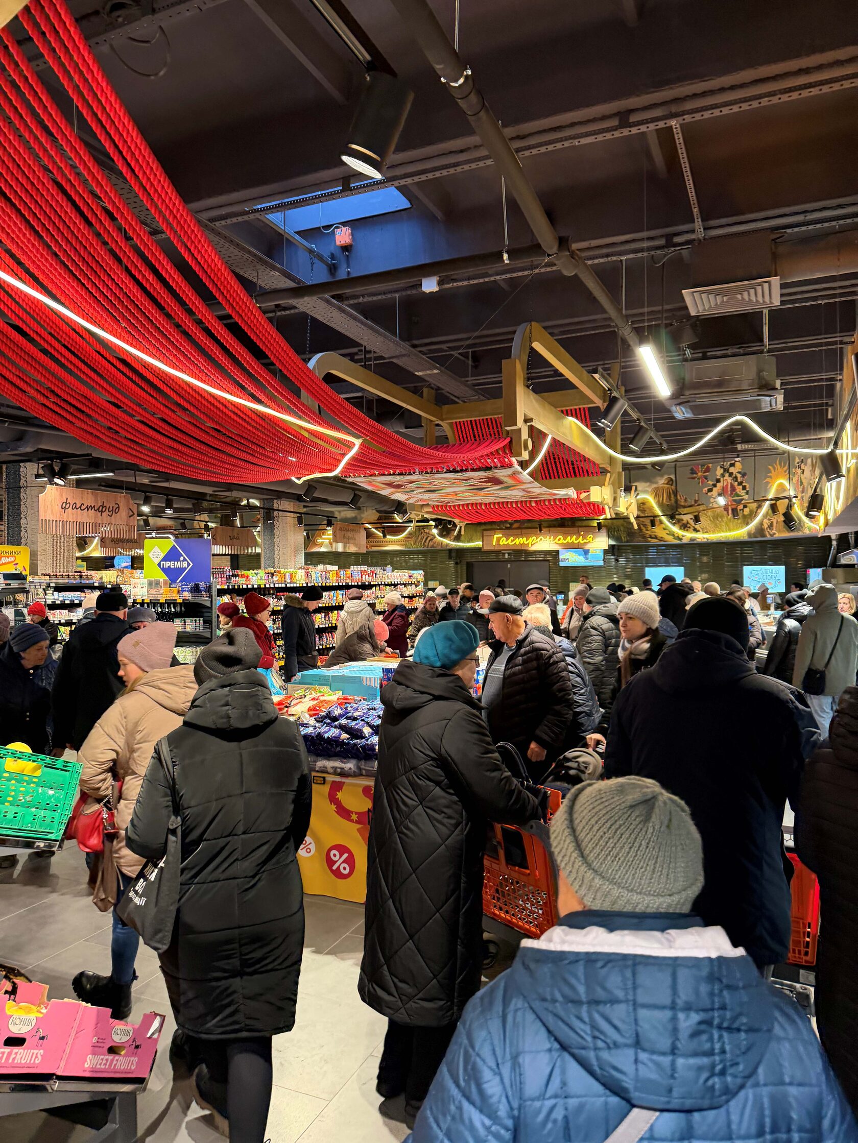 Якірним орендарем ТЦ став супермаркет «Сільпо», концепція якого натхненна традиціями українського ткацтва. Інтер’єр поєднує теплі відтінки, натуральні матеріали та національні орнаменти. Вхідний фриз виконано у вигляді ткацького верстата, котушка з неоновою ниткою інтегрована у назви всіх відділів. Навігація виконана у формі гребінців для ткацтва, а над зоною «Садовина та Городина» розміщено артоб’єкт у формі ткацького верстата, що переходить у килим.