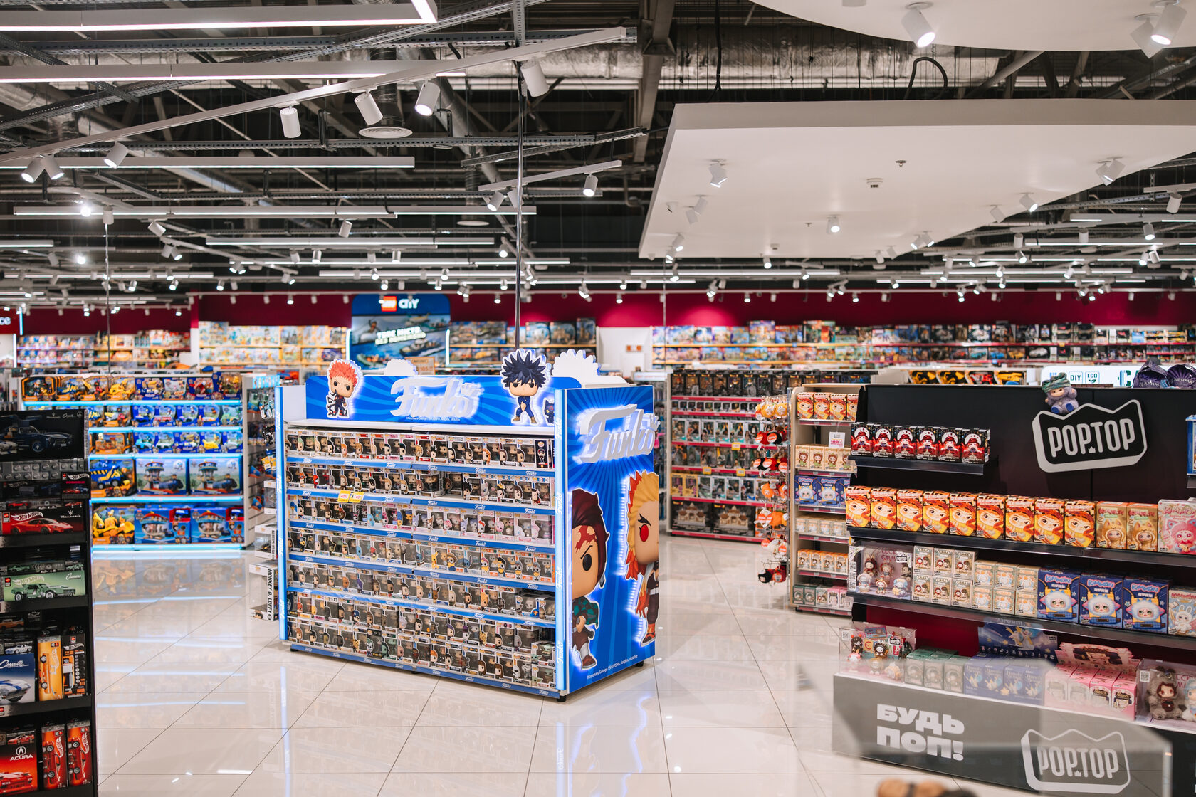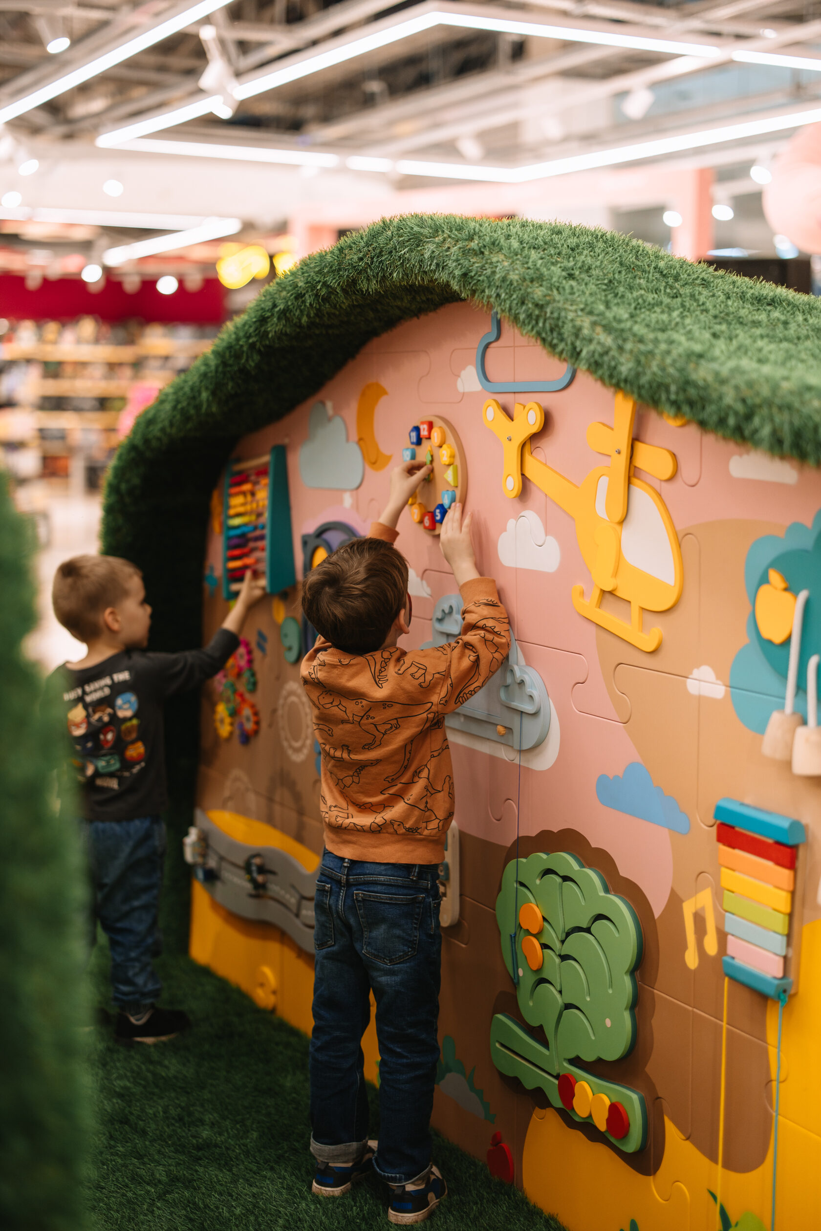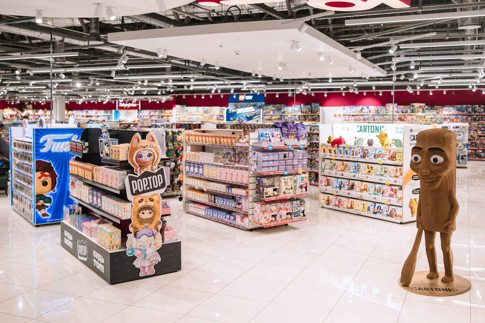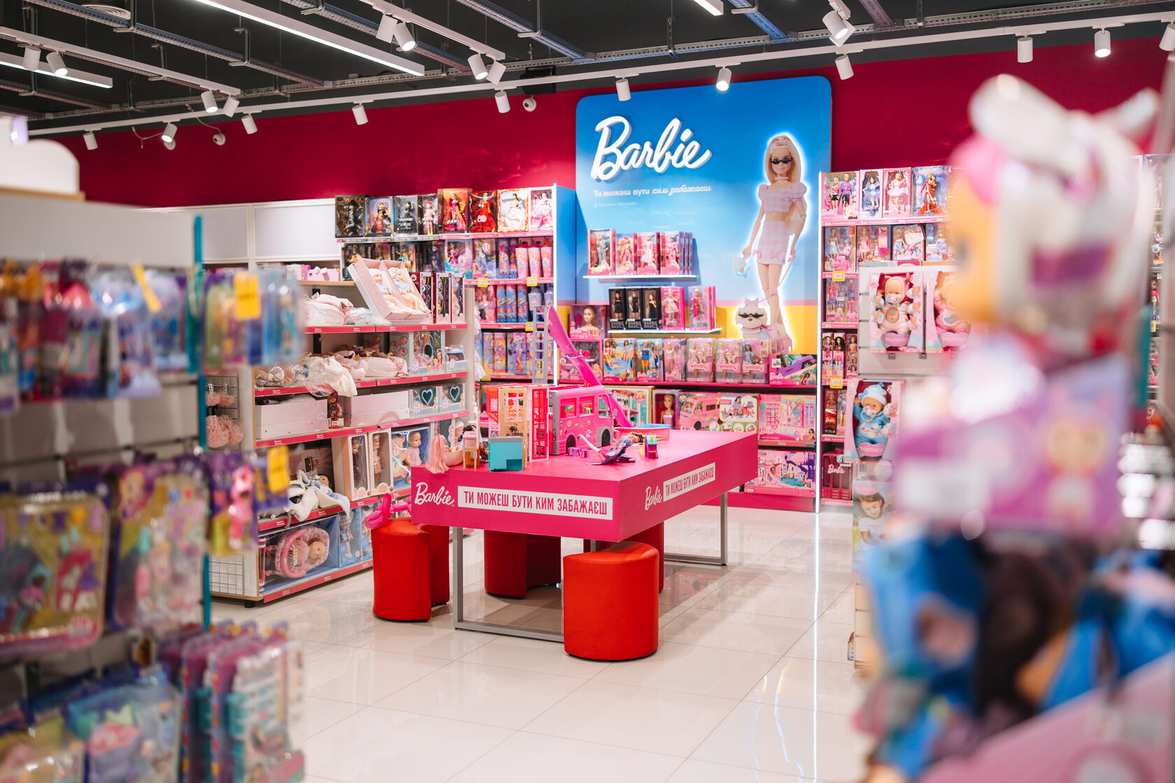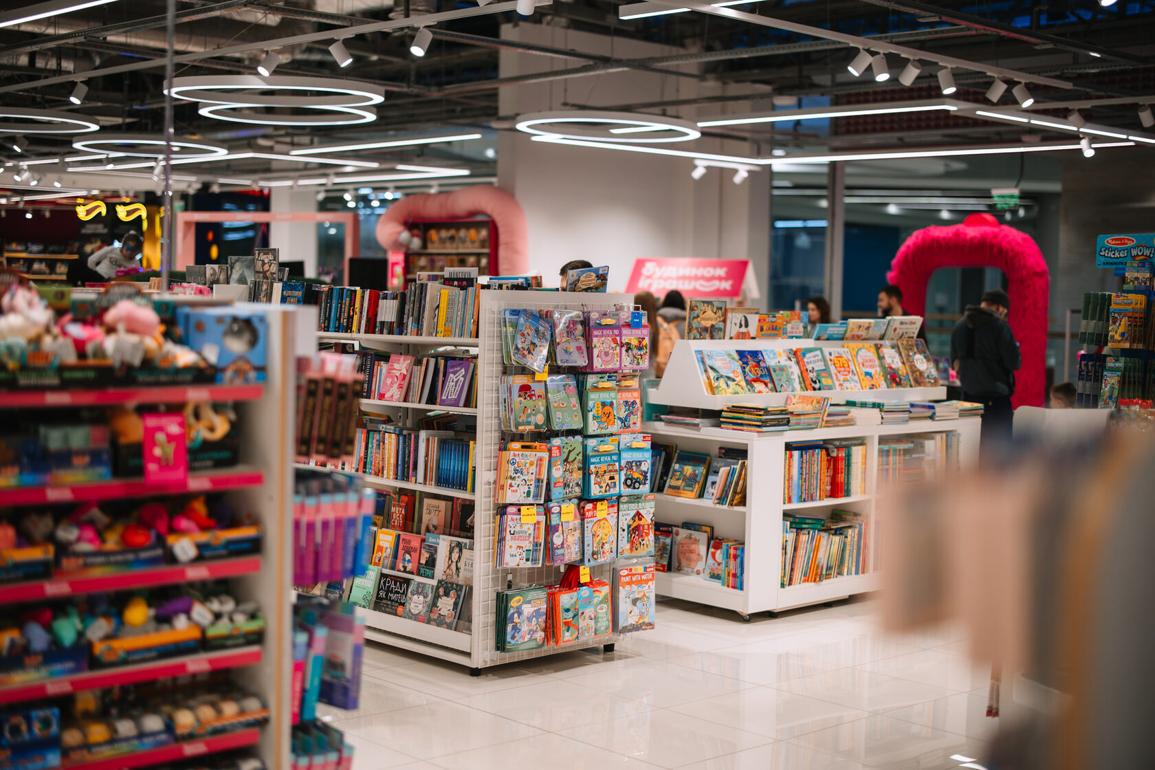 Загальна площа магазину 1161 кв. м. Простір отримав оновлений дизайн та низку інтерактивних зон: великий острів із бізібордами, геймінг-зону з PlayStation, трек Hot Wheels, зону для гри з Barbie, тематичні фотозони та інсталяції з фігурками популярних персонажів. У перші дні відкриття середній час перебування клієнтів у магазині на 40% перевищив середній показник по мережі.