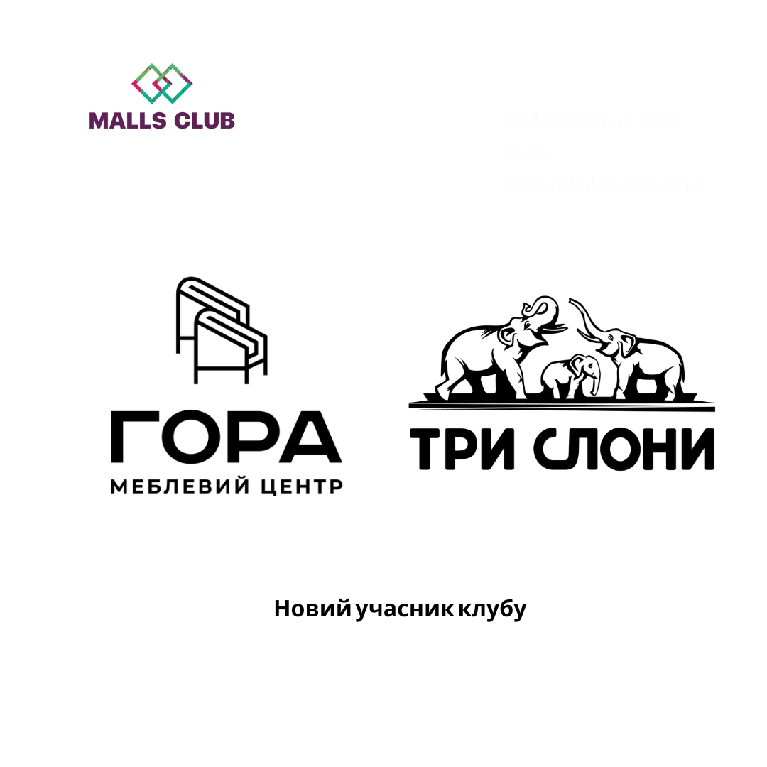 Раді вітати нових учасників професійної спільноти Malls Club – торговий центр «Три Слони» та мережу меблевих центрів «Гора», що представлена у Львові та Стрию!